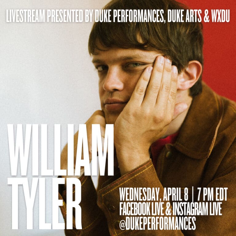 The Duke Performances livestream series launches on April 8 with guitarist and composter William Tyler. William is a part of the Merge Records family, and Duke Performances commissioned William’s Corduroy Roads in 2014.